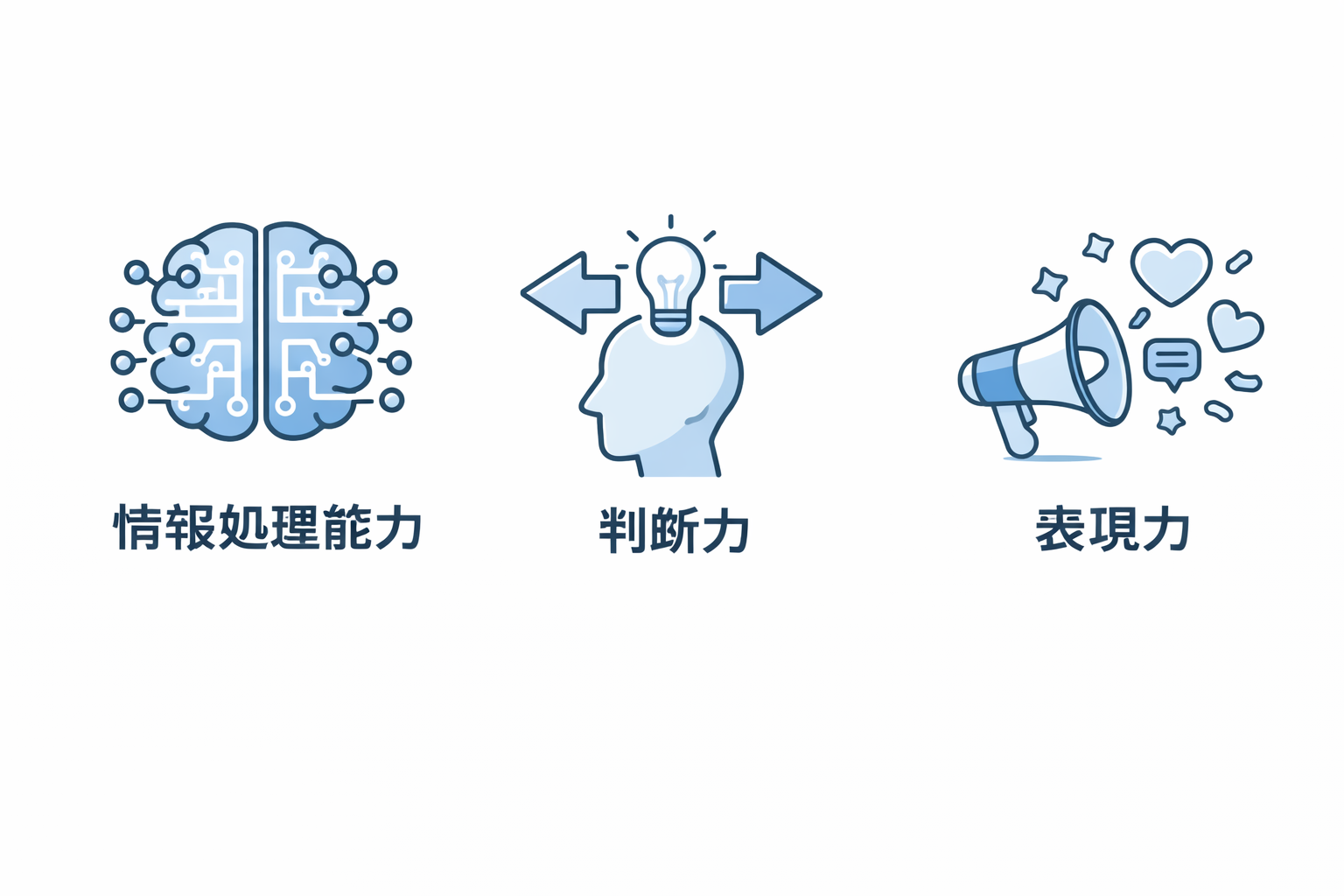 多くのサイトでは「思考力」と一括りにされますが、 実際には次の3つに分解できます。
